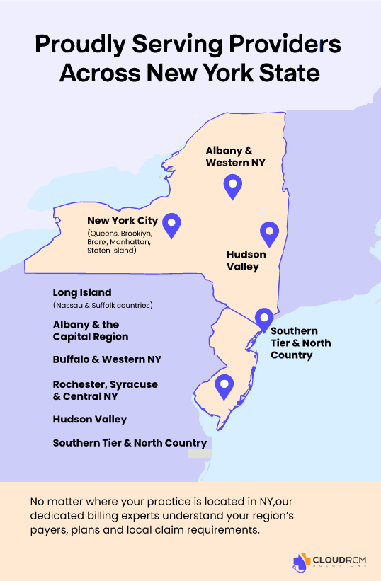Medical billing in New York comes with its own set of challenges, including complex Medicaid plans, tight credentialing processes, and payer-specific rules that can easily lead to delays or denials. Working with a billing partner who truly understands the New York landscape can make a real difference. At CloudRCM, we’ve built our services around the needs of local providers, offering hands-on support, faster credentialing, and smarter revenue cycle solutions that help you get paid accurately and on time.