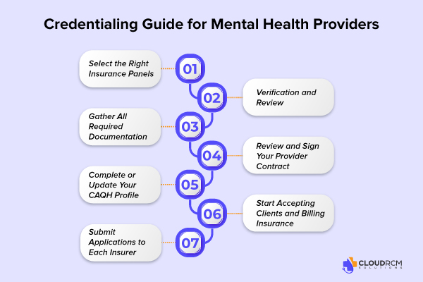 Credentialing doesn’t have to be stressful. CloudRCM helps mental health providers get credentialed faster by managing applications, CAQH updates, and insurer follow-ups so you can focus on your patients, not paperwork.